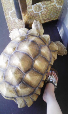 デカイ!水族館以外でこんなデカイカメ、初めて見た。そして触り放題。