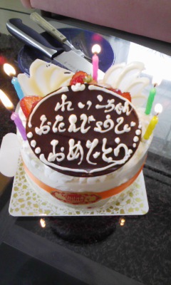 Make a wish (一気に吹き消せたら願いが叶うらしい)は叶わず?三回でけしたから願い事も三分割なんだろーか。